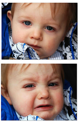 My friend's son, a little cranky because he needs a nap and we couldn't find his binky. Never fear, it was found and once the car got on the road the nap followed!